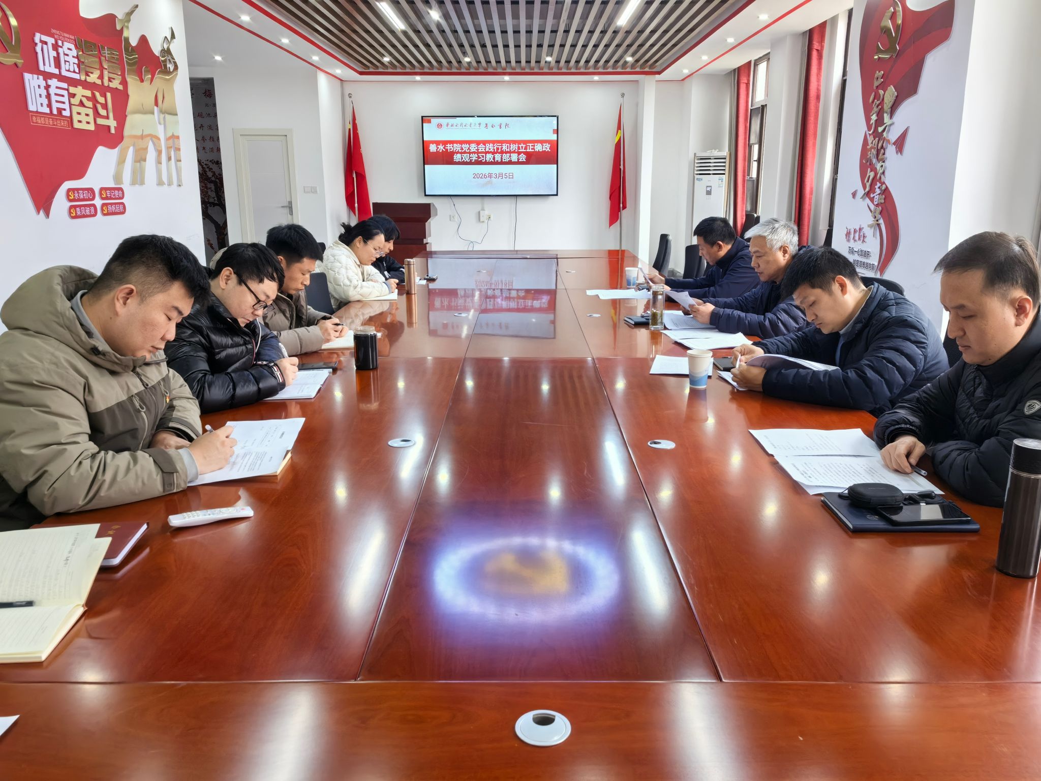 3月5日下午,华北水利水电大学善水书院召开党委(扩大)会议,安排部署树立和践行正确政绩观学习教育。书院全体教职工参会,会议由书院党委书记曹连海主持。