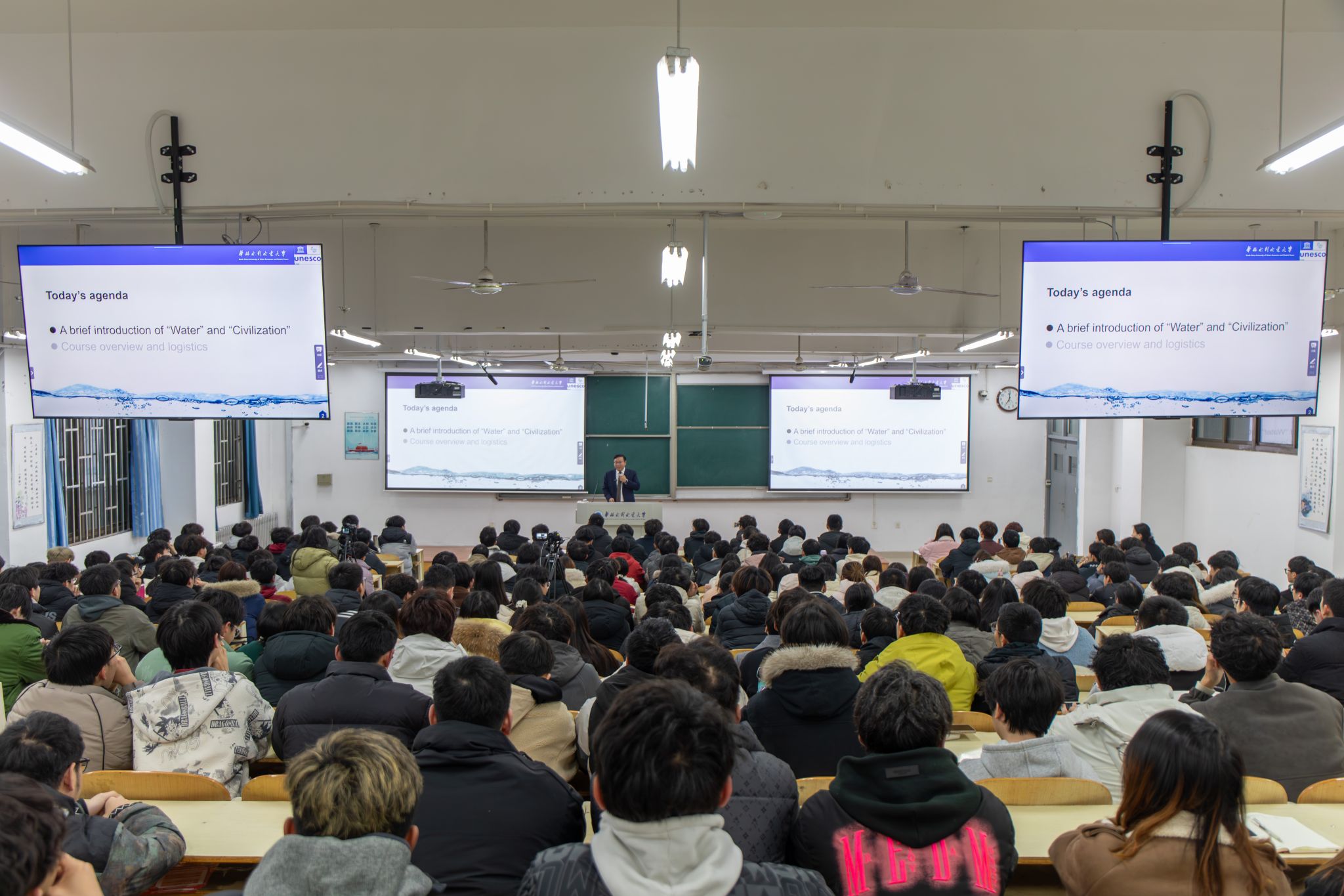 3月4日晚,由华北水利水电大学精心打造、全球院士与顶尖专家联袂讲授的国际课程《Water and Civilization》(水与人类文明)正式开讲。校长刘俊国教授以全英文方式讲授第一课。