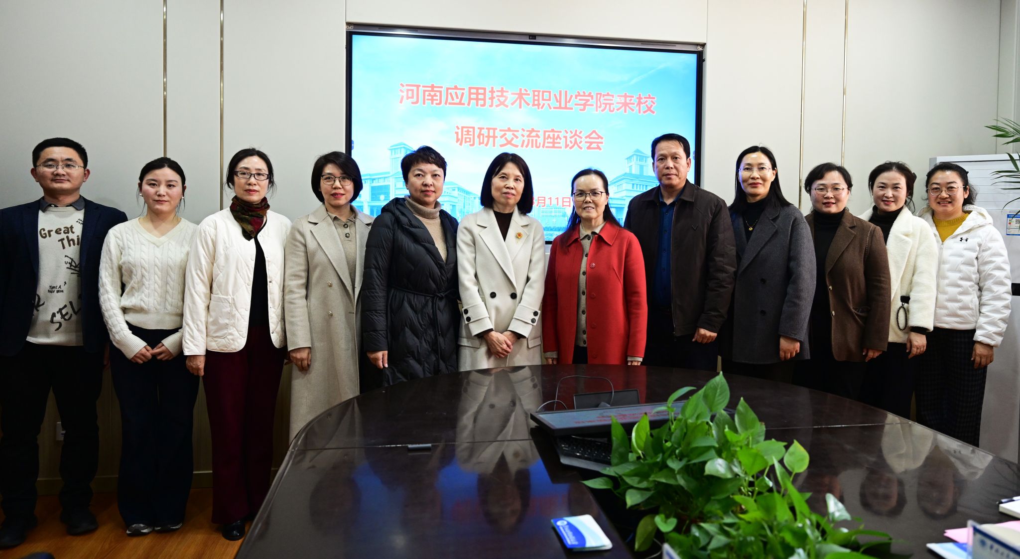 3月11日下午,河南应用技术职业学院工会主席陈君丽一行来校交流,双方在龙子湖校区综合实验楼519会议室进行座谈。校党委副书记焦爱萍出席会议并致辞,会议由工会副主席李明霞主持。