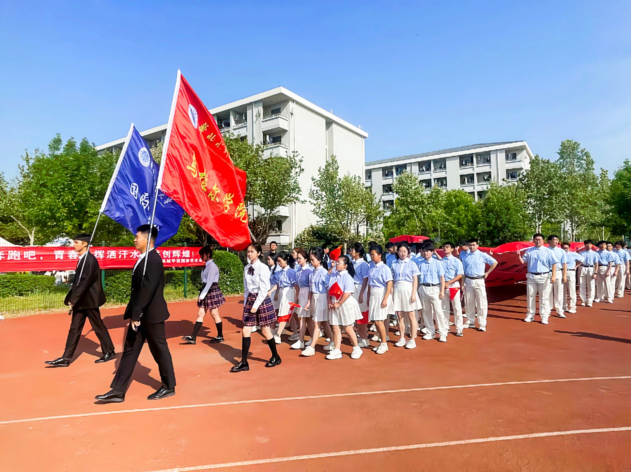 恰同学少年,风华正茂。为贯彻党的二十大精神,进一步落实立德树人根本任务,积极推进五育并举教育方阵,活跃校园生活,增强学生体质,促进学生全面发展。4月18日,华北水利水电大学2024年春季田径运动会暨全民健身大会隆重举行。