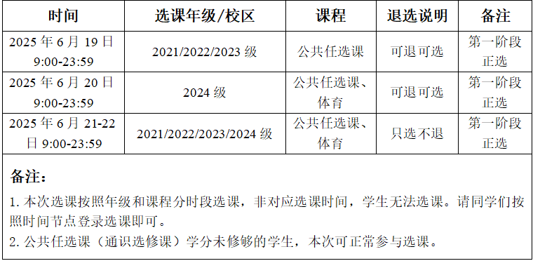3.不允许选修已修读过且未注销的课程,否则成绩不予认定。