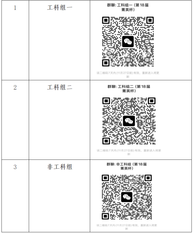 3. 决赛选手抽签。请各组别选手扫码进群,于11月21日(周五)14:30-15:00进行微信群小程序抽签,现场不可改变顺序。