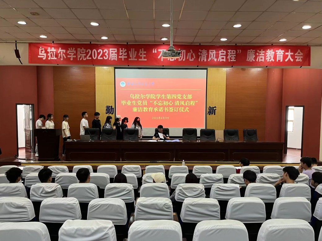 6月9日,乌拉尔学院启动“不忘初心 清风启程”廉洁教育系列活动。学院党委书记郭贵海为2023届毕业生党员上廉洁教育主题党课,副书记高郁斌为毕业生党员践清廉之行,各学生党支部开展了一系列形式多样、内容丰富的清廉教育活动。