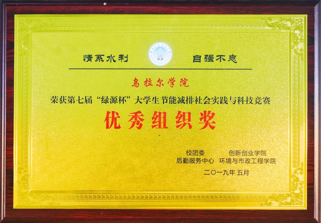 第七届“绿源杯”大学生节能减排社会实践与科技竞赛优秀组织奖(2019.05)