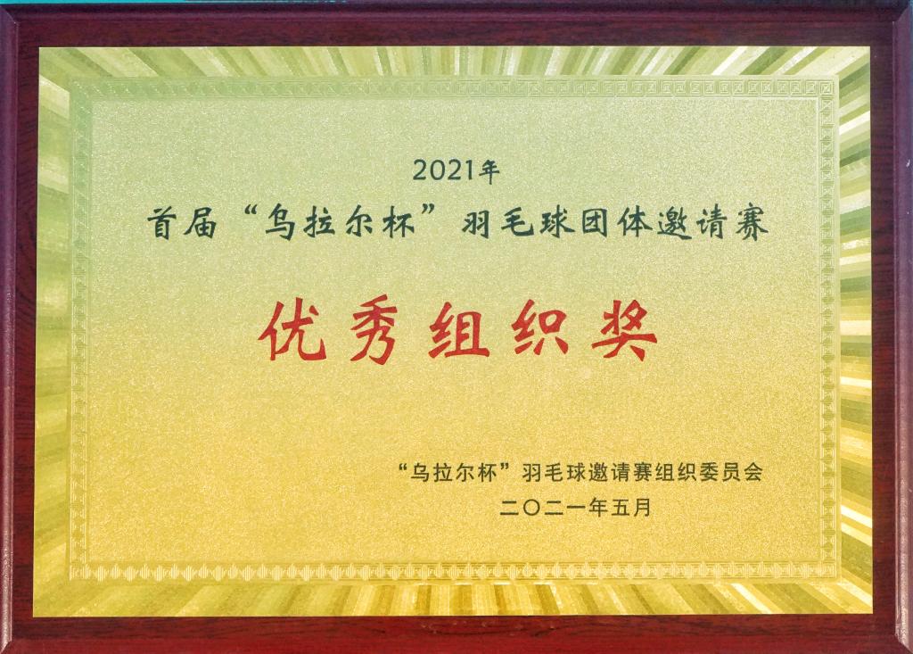 2021年首届“乌拉尔杯”羽毛球团体邀请赛优秀组织奖(2021.05)