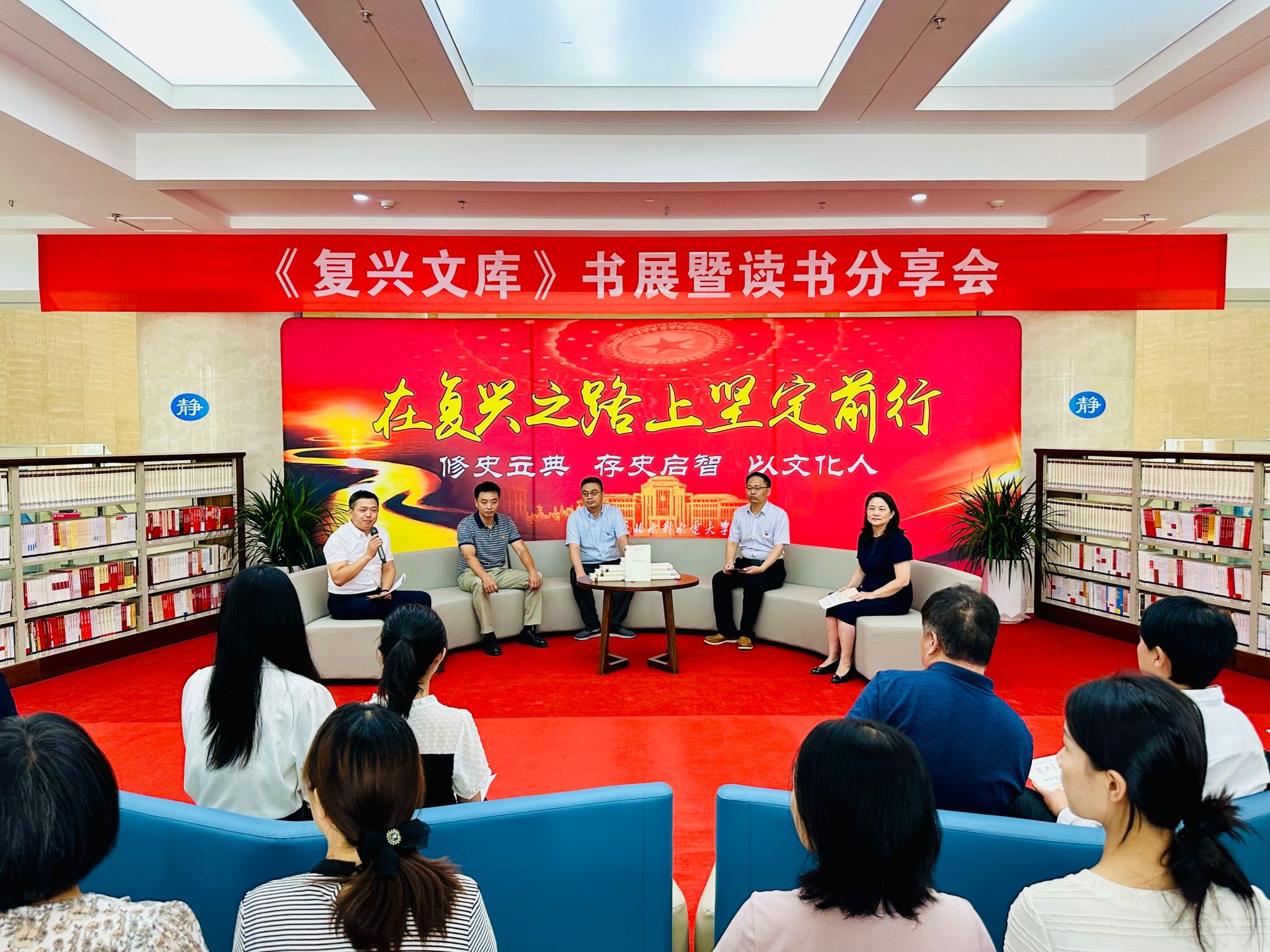 据悉,《复兴文库》书展暨读书分享会是图书馆党总支“七一”主题党日系列活动的开篇,在未来的一周内,图书馆党总支将带领党员们进行“七一”主题党课、校史馆参观与研学、党建主题影片观影与交流、集体政治生日等系列活动,共同回顾党的光辉历程,弘扬党的优良传统。图书馆党总支在校党委的坚强领导下,在全体党员和教职工的共同努力下,必将在“锚定双一流、建功新时代”的道路上坚定前行,必将在中华民族伟大复兴的道路上坚定前行。