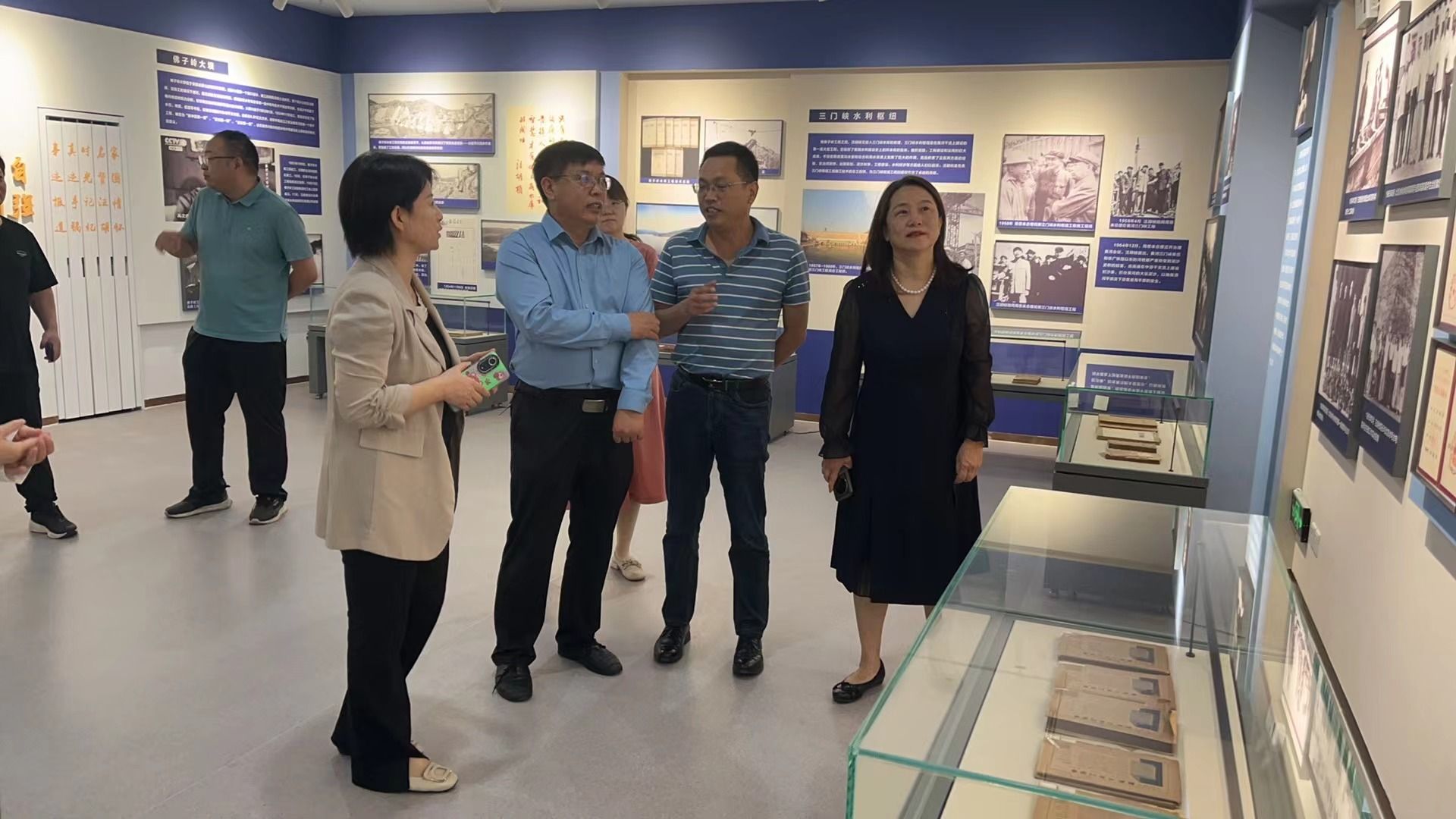 在图书馆二楼汪胡桢院士特藏室,黄健平介绍了汪胡桢院士特藏室文献的保管、阅览、数字化及家具设备采购等情况,着重介绍了图书馆保护、利用汪胡桢院士著作及捐赠文献,在书香育人、文化育人等方面的积极做法。随后,在三楼水利特色文献阅览区,南东梅向来宾介绍了我馆的文献资源建设情况,重点介绍了我馆馆藏资源的结构配置,水利特色资源优化情况,图书流通情况以及图书馆在环境育人方面的一些思考。最后,大家参观了图书馆黄河流域水文资料、四库全书等特色文献资源区。