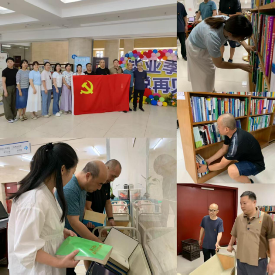 为深入贯彻中央八项规定精神学习教育,推动学习教育走深走实,图书馆党总支以“立足岗位作贡献”为主题,组织党员开展毕业生捐赠图书整理服务活动,用实际行动践行初心使命,为毕业生和全校师生办实事。
