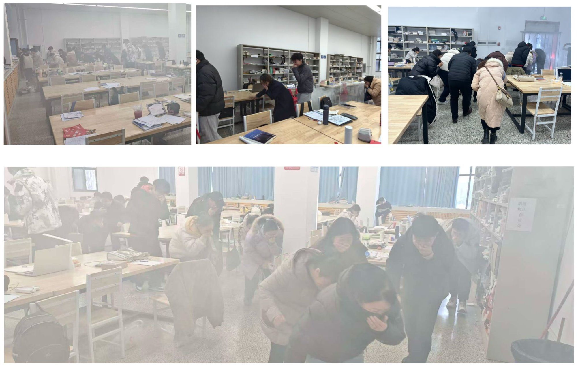 理论培训结束后,全体人员到图书馆二楼自习室,开展模拟烟雾环境下的实地逃生演练。在演练开始前,教员再次强调了疏散顺序、逃生方法等注意事项。随后,模拟烟雾在预定区域释放,浓烟迅速弥漫。参与演练的师生立即进入应急状态,用衣物捂住口鼻,压低身体,沿安全疏散指示灯指示方向,紧张、有序、快速地撤离“火场”,全程未发生拥挤、踩踏等意外情况,顺利到达指定安全区域集合。