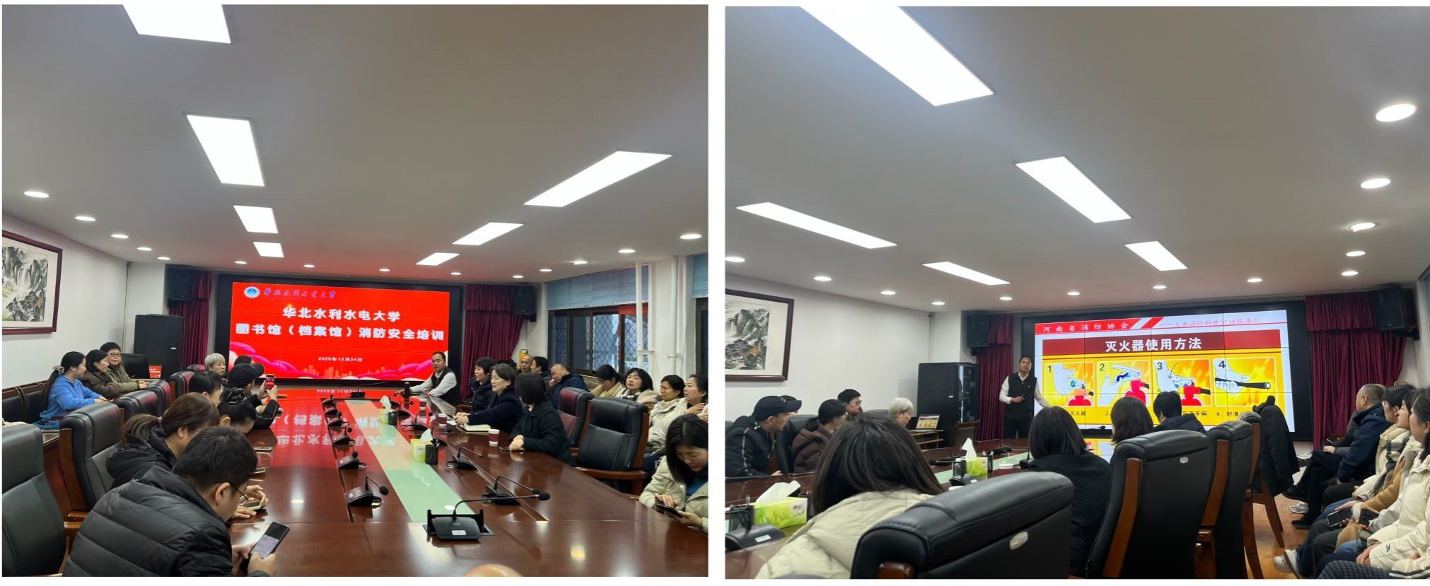 为切实提升教职工的消防安全意识与应急处置能力,筑牢校园重点场所的安全防线,图书馆(档案馆)于12月24日组织全体教职工,在花园校区图书馆开展了消防安全知识培训与应急演练活动。馆长黄健平、副馆长南东梅、刘亚菲参加了培训和演练。
