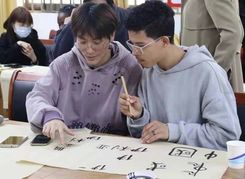 为了帮助海外留学生深入了解中原文化,更好地适应在校的学习和生活,2023年4月2日,“留学华水,爱上中原”跨文化交流主题活动在国际教育学院孟之舟活动室举办。国际教育学院老师以及中外学生、孟之舟党支部学生党员代表参加活动,书法研究所所长、艺术学院副院长金玉甫教授受邀莅临现场指导。