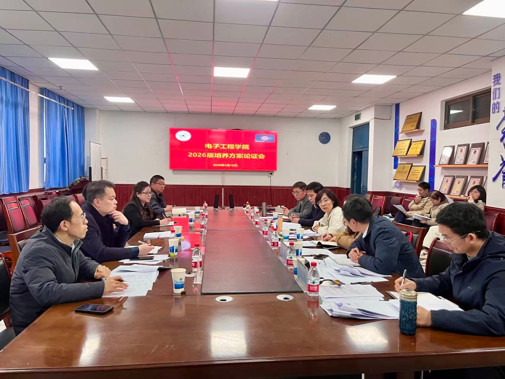 为深化人才培养模式改革,进一步提升本科人才培养质量,3月19日下午,电子工程学院在S5-203(西)召开2026版本科人才培养方案修订论证会。会议邀请河南工业大学杨铁军教授、郑州航空工业管理学院陈宇教授、河南科技大学王辉教授、郑州轻工业大学刘德伟教授、中电科二十七所魏龙超高工等专家现场指导,北京航空航天大学张有光教授、河海大学霍冠英教授线上参会指导。教务处处长郭瑾莉、副处长周冠琼,学院党委书记武玉敬、院长许磊及学院领导班子成员、各专业负责人、骨干教师等参加会议。武玉敬主持会议。