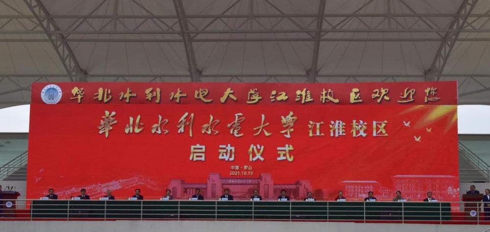 2021年10月19日,华北水利水电大学江淮校区启动仪式暨新生开学军训动员大会在河南省信阳市罗山县举行。水利部水务研究培训中心、河南河长学院在江淮校区揭牌。