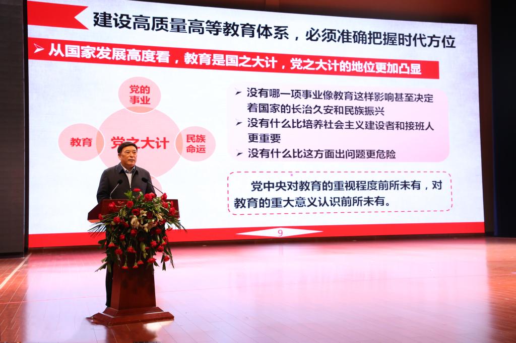 王清义指出,建设高质量高等教育体系,必须准确把握时代方位。从国家发展高度看,教育是国之大计,党之大计的地位更加凸显;从现代化建设维度看,高等教育对建设现代化强国的支撑作用更加凸显;从国际水平角度看,高等教育改革开放趋势更加凸显;从办学体量规模看,高等教育普及化特征更加凸显;从办学结构类型看,高等教育多元多样化办学结构更加凸显。