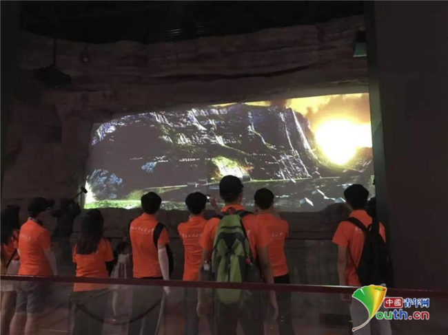 暑期社会实践宣讲团队员们观看红旗渠建设视频。白玉清 摄