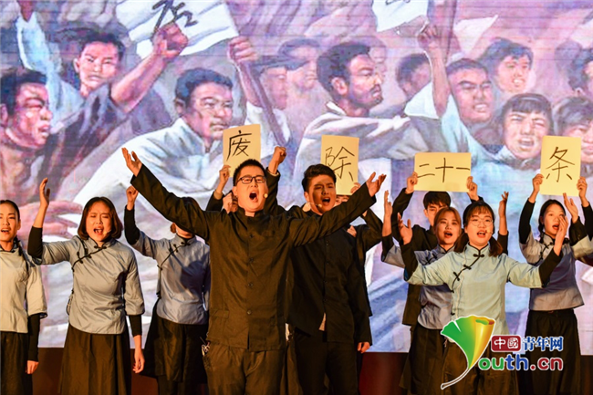 活动现场,历史剧《五四运动》,让学生们从历史剧中找寻到红色基因的时代特征;英雄剧《风采瑞鹏》,让学生感受到“理想和良心一样也不能丢”的崇高精神产生的巨大能量;梦想剧《你的模样》,展现了当代大学生“小我融入大我,青春献给祖国”的精神风貌……在这场富有特色的二课思政中,青年学子们一起守初心、担使命,汲取前进力量。