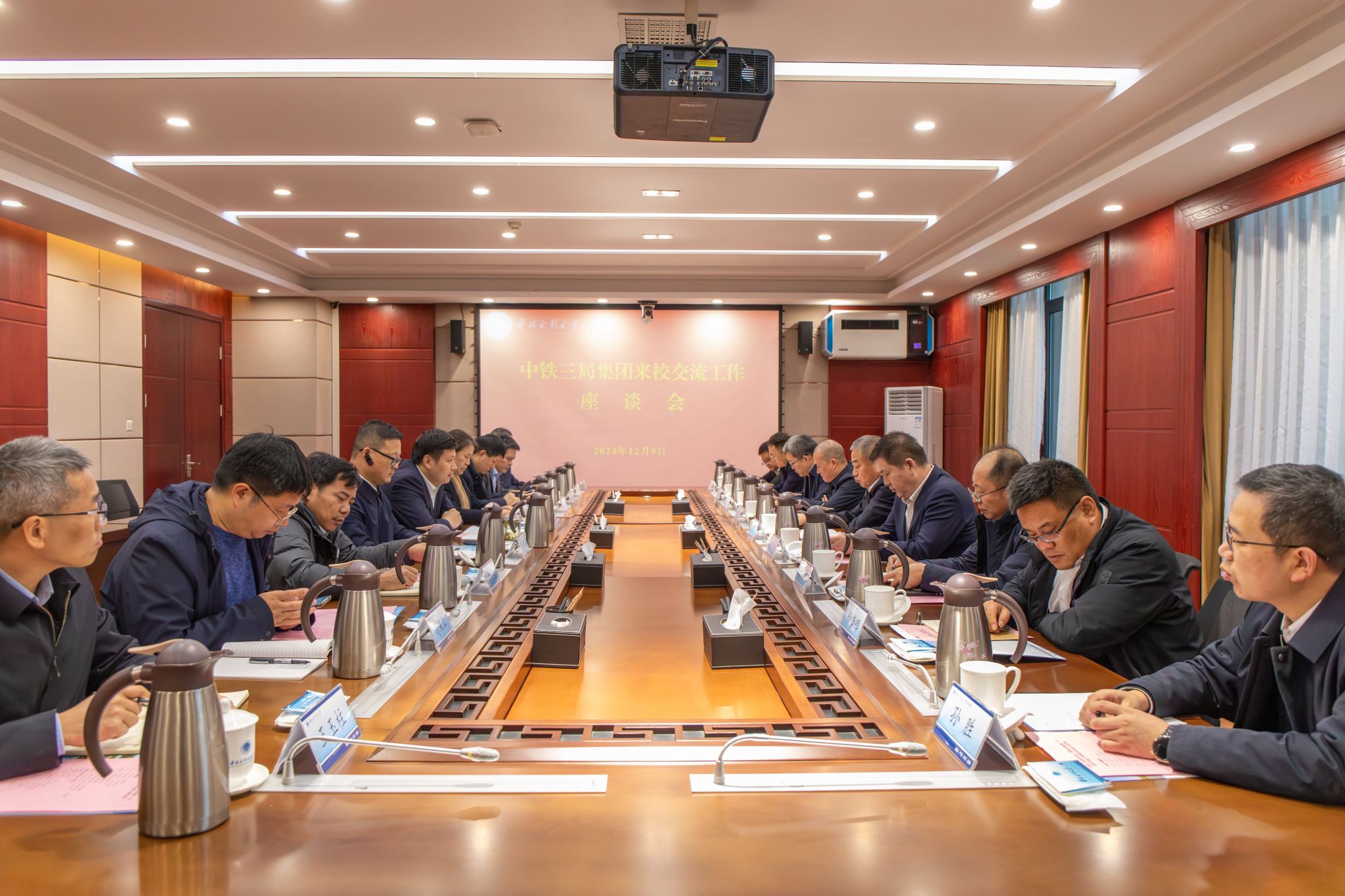 12月9日下午,中铁三局党委书记、董事长张民栓,党委委员、副总经理李彪,党委委员、总会计师何军带队来我校交流座谈。校党委书记王笃波出席座谈会,会议由副校长刘雪梅主持。