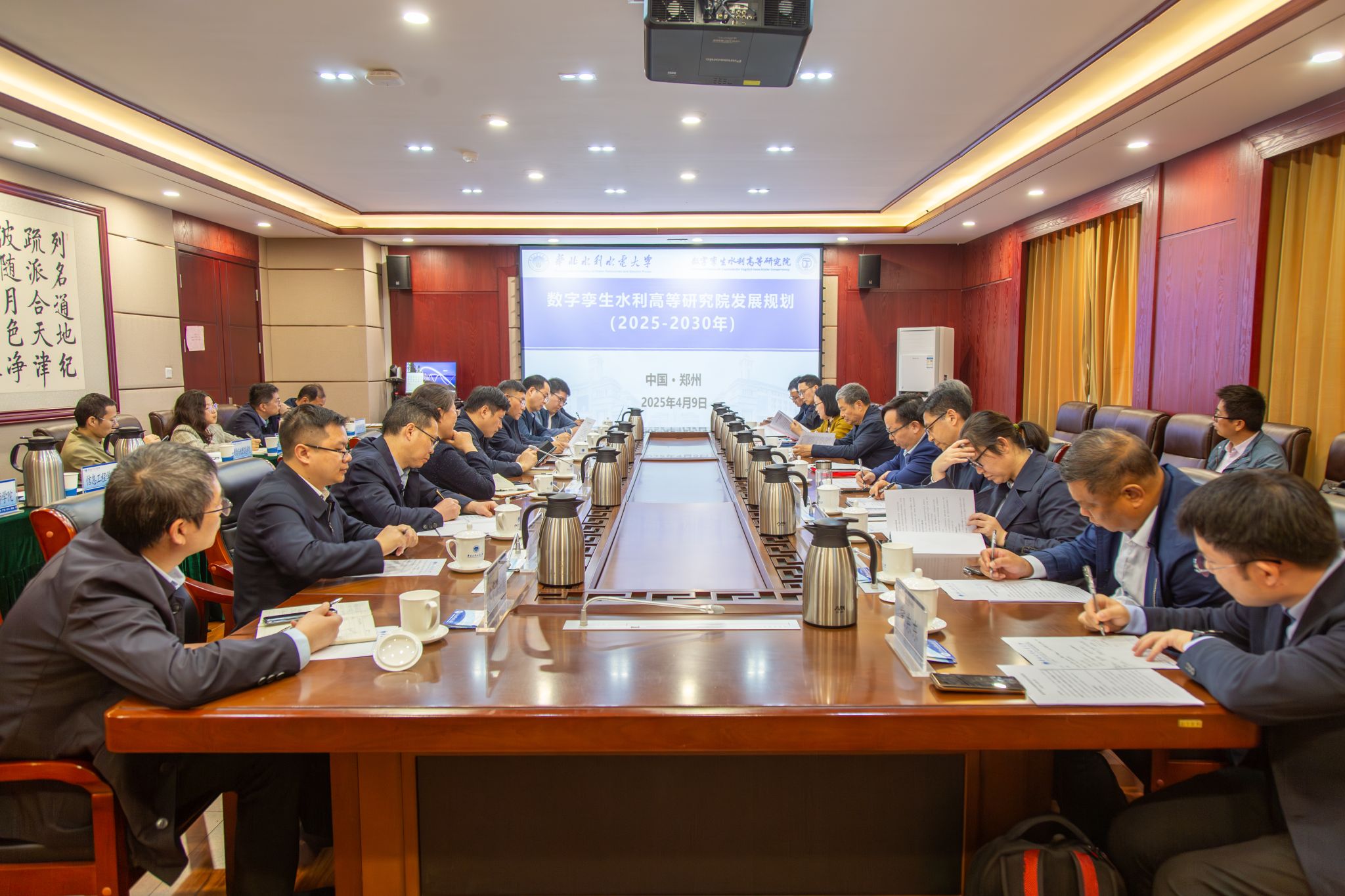 4月8日-9日,蔡阳一行还先后与数字孪生水利高等研究院举行座谈交流会,参加水利部《水利人工智能应用技术与实践》教材研讨会,并参观了我校办学成果展。