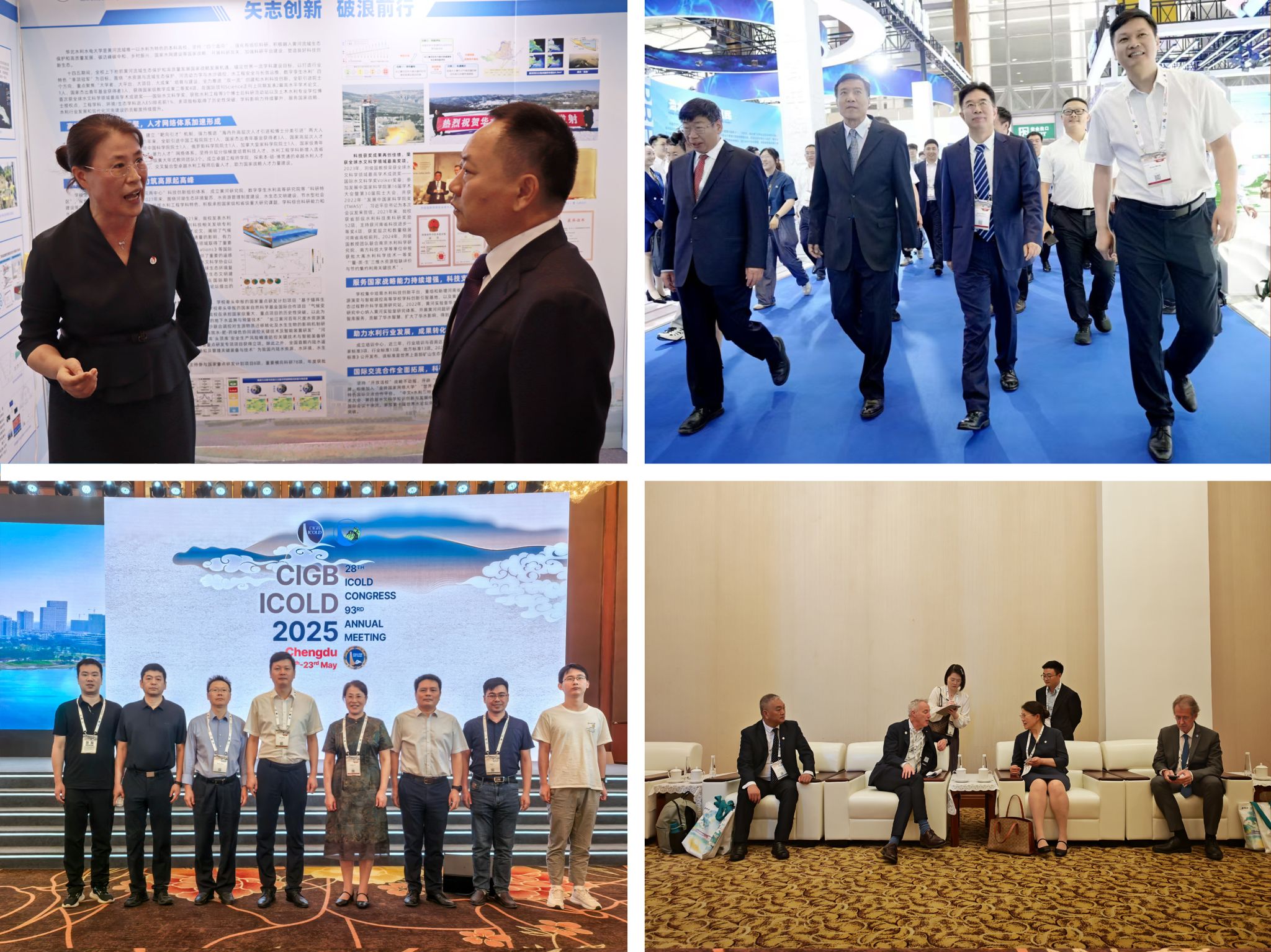 我校党委书记王笃波率团出席盛会,参加多场论坛交流及成果展览展示活动,与国内外知名专家就水利工程前沿技术、学科建设及产学研合作等内容进行了深入广泛交流。刘雪梅副校长作“引调水工程安全多模态大模型构建技术”学术报告,与国际水利与环境工程学会主席菲利普·顾博维尔教授、国际水电协会首席执行官埃迪·里奇教授座谈交流,向全球水利工程领域专家学者推介展示我校在水库大坝工程和数字孪生水利等方面的科研成果与技术实力,引发与会学者高度关注与充分肯定。