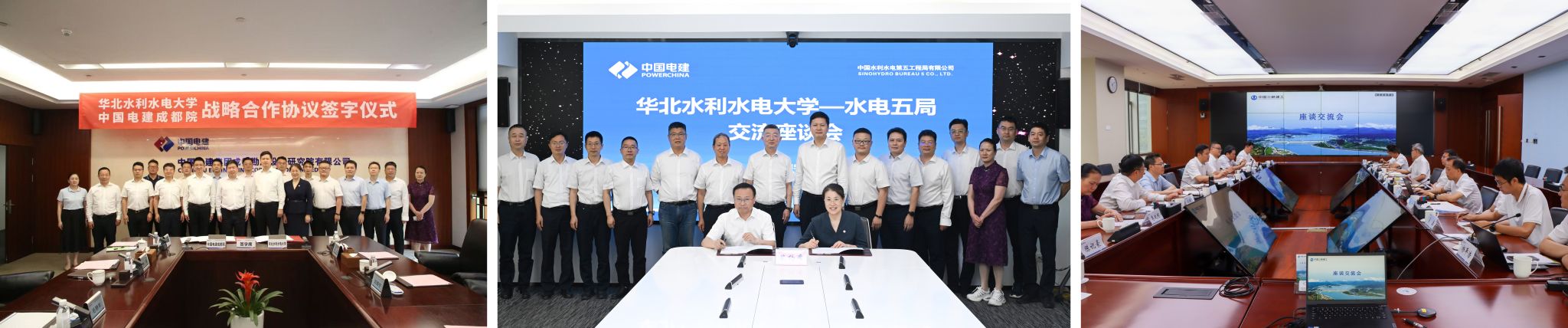 5月19日-21日,王笃波书记率团利用会议间隙走访在川行业企业,分别与中国电建集团成都勘测设计研究院有限公司总经理张世殊,中国水利水电第五工程局有限公司党委书记、董事长李峥和中国三峡建工(集团)有限公司党委书记、董事长高鹏就深化校企合作等事宜进行座谈交流。王笃波向各单位长期以来对学校的支持表示感谢,并介绍了学校的发展历程和近年来在人才培养、科技创新、社会服务、国际合作等方面取得的成绩,充分了解走访企业在深化合作方面的需求。王笃波表示,当前学校正团结带领全校师生员工,锚定“双一流”创建目标,大力实施“四卓越两赋能一提升”行动,持续提升办学核心竞争力,以“有目标有组织的人才培养、科技创新、社会服务”改革为核心路径,发挥“四院两中心”平台作用,不断激发办学活力和内生动力,加快推进学校高质量特色化发展,希望校企双方进一步深化合作,促进产教融合,在人才培养、科技创新、实习就业等方面取得更多的成果。一是加强人才培养合作。发挥企业生产实践优势,开放场景助力学校师生参与实践课题;精准对接企业用人需求,通过共建实习基地、订单式人才培养等方式,与企业构建起“招生—培养—就业”全链条联动机制,实现人才链与产业链精准对接。二是加强科技攻关合作。聚焦重点领域开展联合攻关,共同推动科研项目孵化落地、科技成果转化和行业标准制定,在创新平台建设、科技奖项申报等方面加强合作。三是加强人员交流合作。发挥学校专业优势为企业开展人员培训,建立干部教师双向挂职实践机制,实现双方人才资源的流动与共享,促进教育与产业深度融合。与会人员围绕技术研发与科技成果转化、订单式人才培养、人员互派交流、实践教学基地建设等方面进行深入交流并达成共识,学校与中国电建集团成都勘测设计研究院有限公司、中国水利水电第五工程局有限公司分别签订了战略合作协议。各方均表示,将积极推动合作内容的落地实施,确保合作成效,共同推动校企合作再上新台阶。