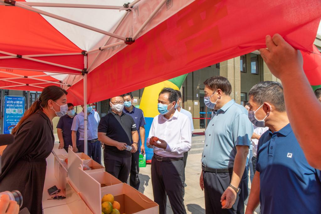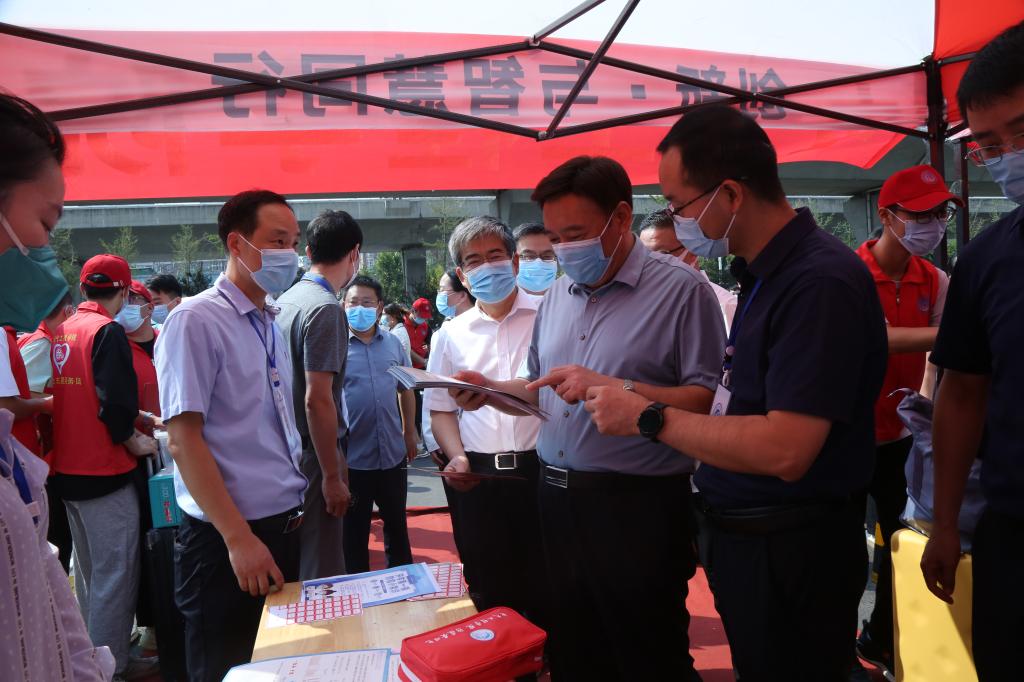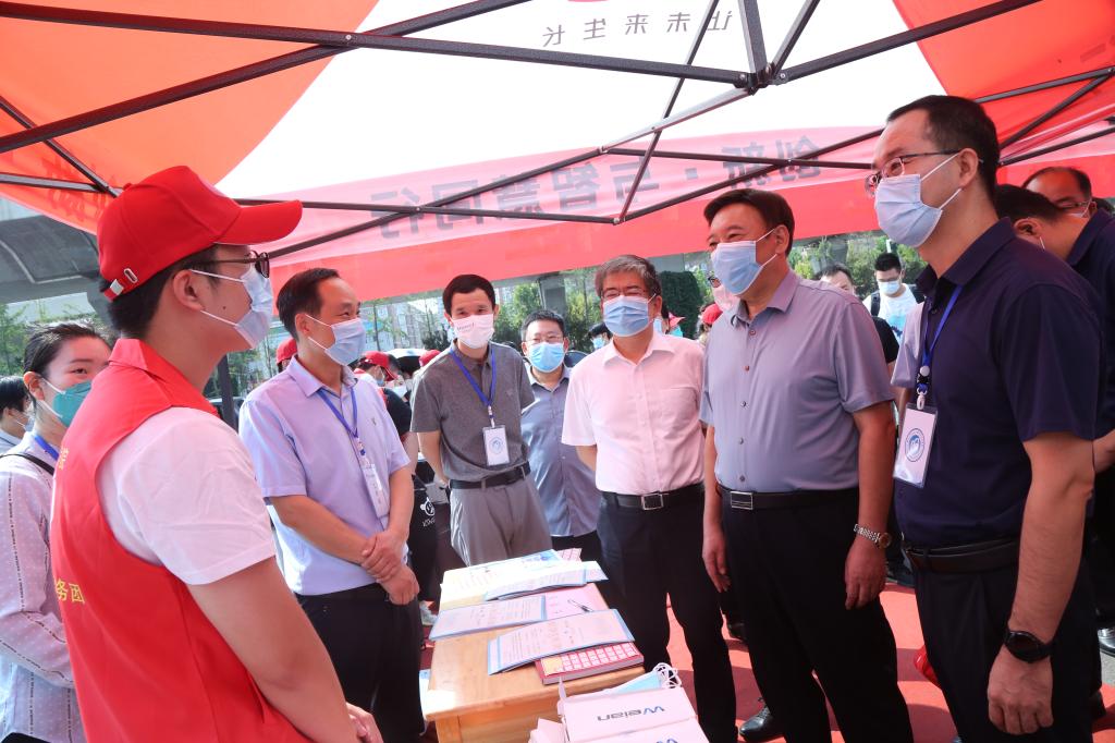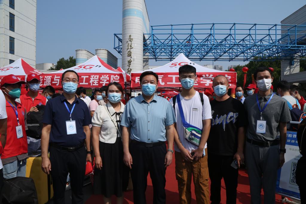 校党委书记王清义,副校长、江淮校区管理委员会党委书记、主任刘盘根,罗山县委书记周哲查看江淮校区迎新点