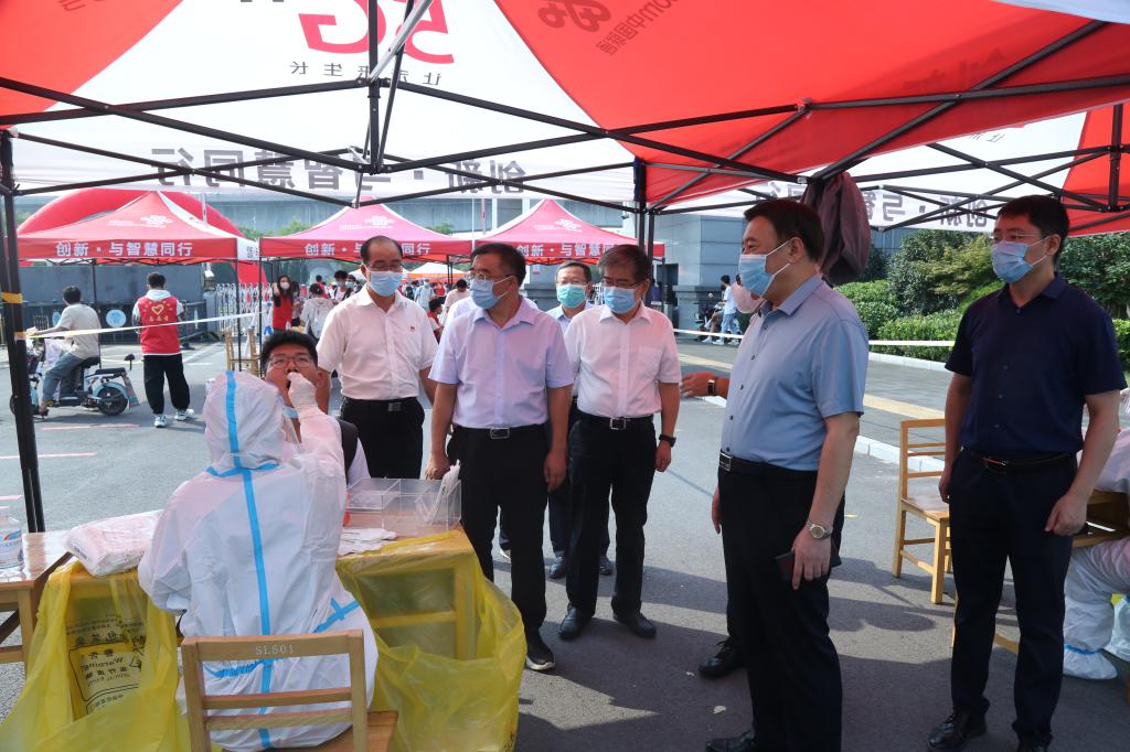 校党委书记王清义,副校长苏喜军,校纪委书记、监察专员王如厂在龙子湖校区检查指导核酸检测工作