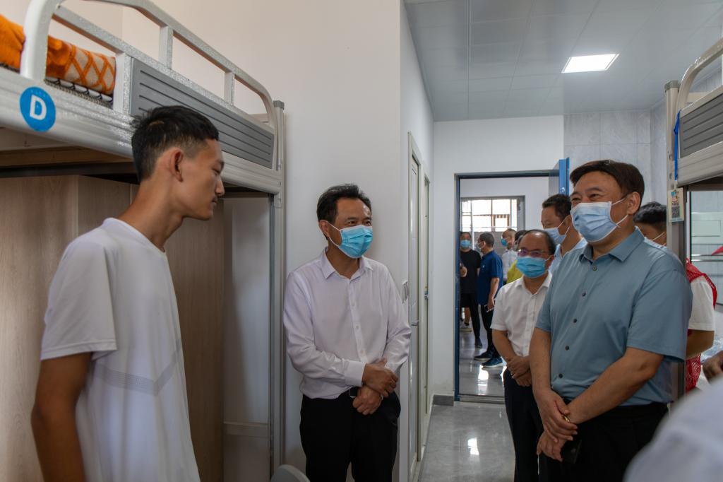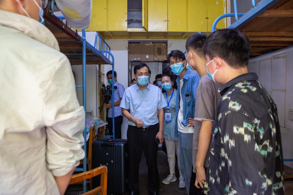 校党委书记王清义,罗山县委书记周哲深入江淮校区宿舍同2022级新生交流