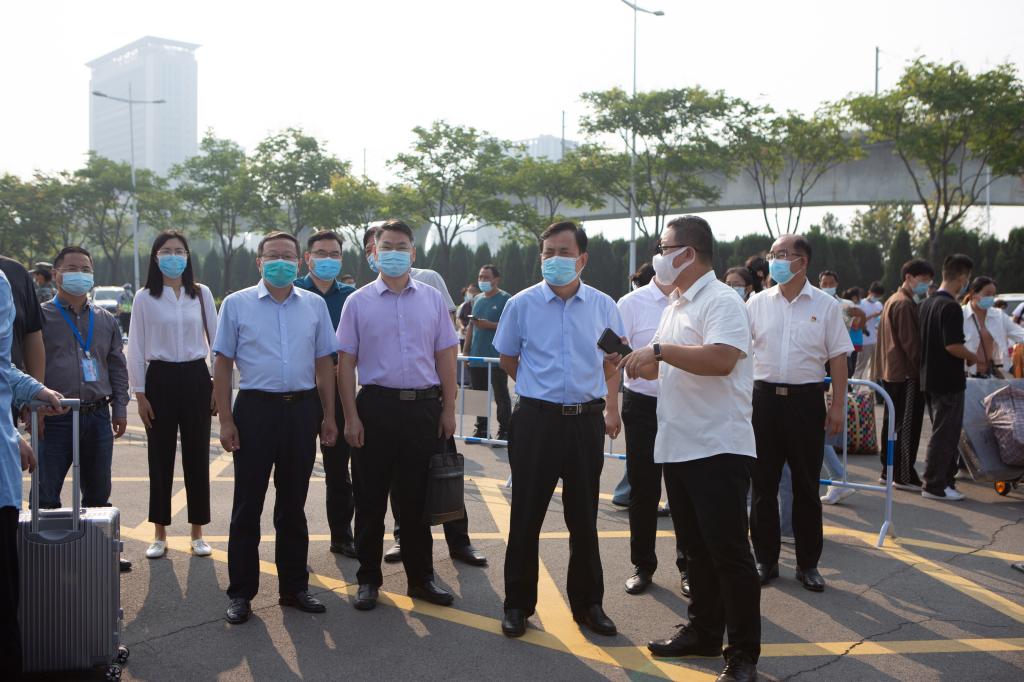 在国旗广场,王清义通过校园大数据系统了解学生报到进度。在校内摆渡车点、核酸检测点等处,他叮嘱随行人员既要为学生提供周到细致的服务和保障,又要毫不放松疫情防控环节的各项工作,切实将迎新工作做细做实,确保迎新工作稳中有序。