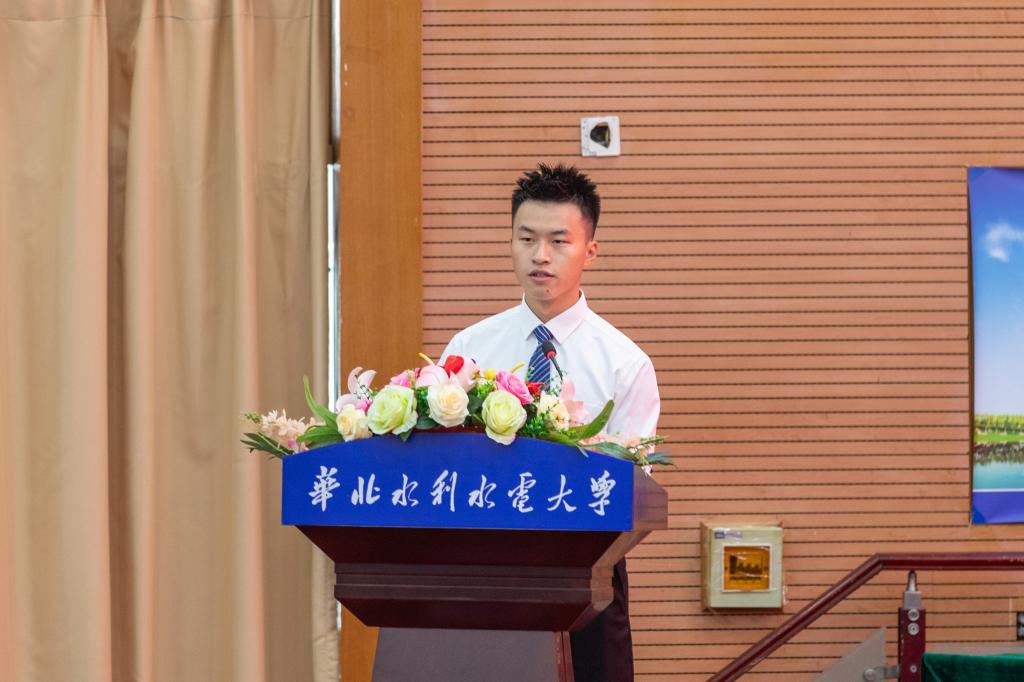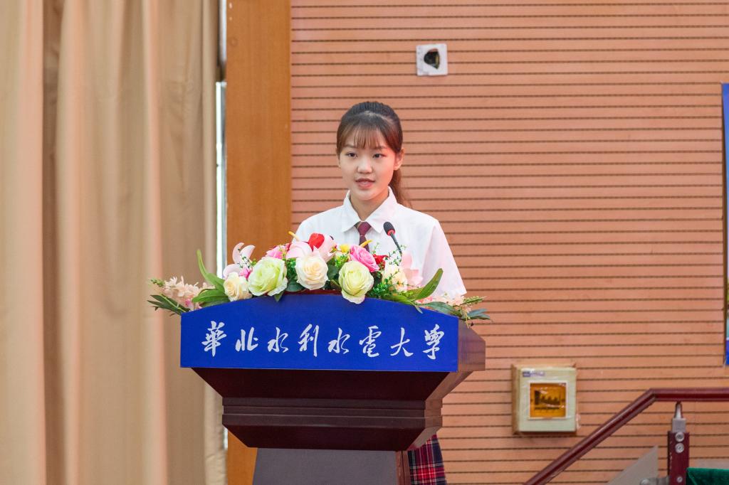 校友代表翟渊军带着对学弟学妹的殷殷关爱,结合自己的亲身经历,告诫大家相信付出终有回报,鼓励同学们要珍惜大学时光、夯实基础能力、增强对母校的自豪感与荣誉感,并表达了对母校情真意切的美好祝福;教师代表熊军华老师向同学们提出要好学乐学、善于规划、努力奋斗、身心健康四点希望,鼓励大家用斗志昂扬的激情编织美好的未来;在校生代表机械学院刘震同学分享了自己三年的大学经历,用“为时代而立心”“为社会而立身”,宣示了华水学子的理想追求和奋斗之路;新生代表水利学院孙奕童同学深情表达了自己的昂扬斗志和对大学生活的向往期待。