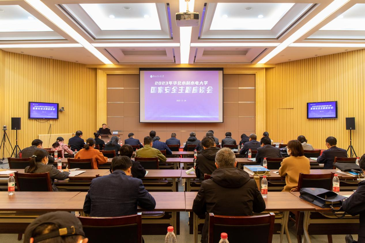 为了深入学习党的二十大精神,贯彻落实总体国家安全观,切实维护学校的持续安全稳定,根据2023年度学校4·15全民国家安全教育日系列工作部署,3月24日,我校在龙子湖校区第四报告厅召开国家安全主题座谈会。校党委副书记、工会主席刘盘根出席会议并讲话。郑州市公安局国保支队文保大队大队长刘新立、郑州市反恐支队基础大队大队长王海法出席座谈会并作专题报告。