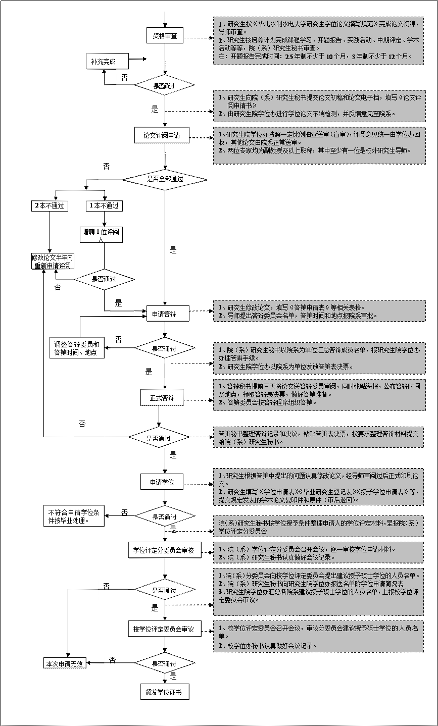 华北水利水电大学硕士学位论文答辩及学位申请流程图