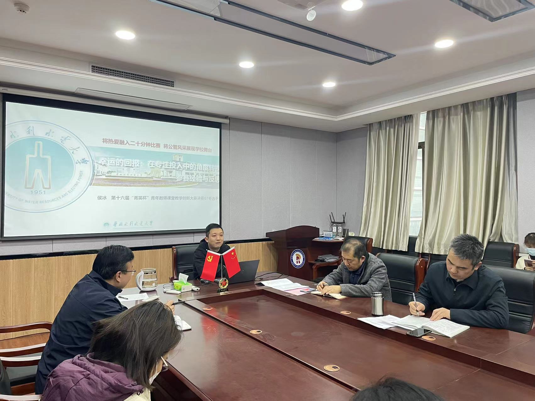 2023年3月16日下午16:00,第十六届“菁英杯”青年教师课堂教学创新大赛一等奖获得者侯冰老师以“幸运的回报:在专注投入中的角度转换”为题,向学院全体教师分享了他的参赛经验。