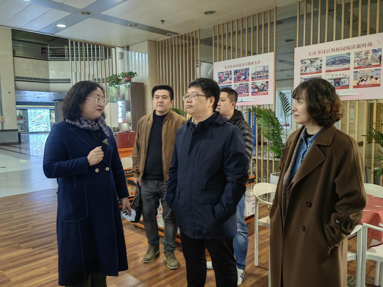 大河书局副总经理许馨热情接待,详细介绍了大河书局业务开展情况和荣誉成就,并陪同考察了大河书局总部、纬五路一小校园阅读中心、经纬书店和文化路一小校园阅读中心,对书店运营管理、文化塑造、环境建设、活动开展等方面进行全面、细致的考察。