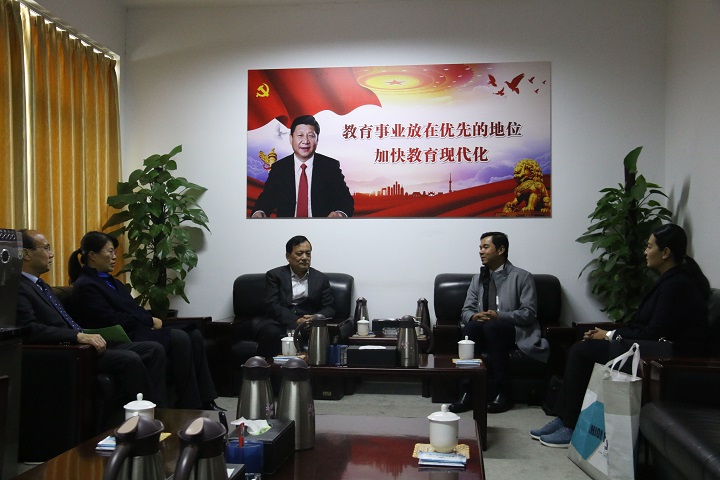 刘文锴校长向Hang Sandap先生一行来访表示热烈欢迎,对Hang Sandap先生为我校留学生招生工作所做的积努力和贡献表示感谢,希望双方在中国政府“一带一路”倡议得到柬埔寨政府积极响应的大背景下,致力于促进柬埔寨学生来华留学的快速发展,进一步拓宽柬方来华留学通道与模式,搭建起中柬两国民心相通的文化桥梁。