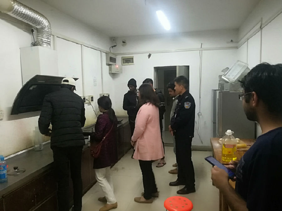 安全大检查紧紧围绕消防安全、电器使用情况、厨房卫生及洗衣房使用等方面展开。刘桂华等逐一检查了每一个留学生学生宿舍,对学生宿舍内存在的使用大功率电器、乱拉电线等安全隐患进行了全面排查和清理,对留学生厨房和洗衣房的使用情况进行了仔细检查,对存在的各类问题提出了整改意见。随行的鲁警官向留学生宣传了宿舍安全注意事项,叮嘱留学生切实注意宿舍安全问题,认真遵守学校关于宿舍安全管理的有关规定,确保人身和财产安全。在检查过程中,刘桂华等还对留学生住宿情况进行了检查,没有发现无夜不归宿者。刘桂华还亲切地与留学生交流学习、生活及日常诉求等方面的情况,对留学生思想动态有了更深一步的了解。
