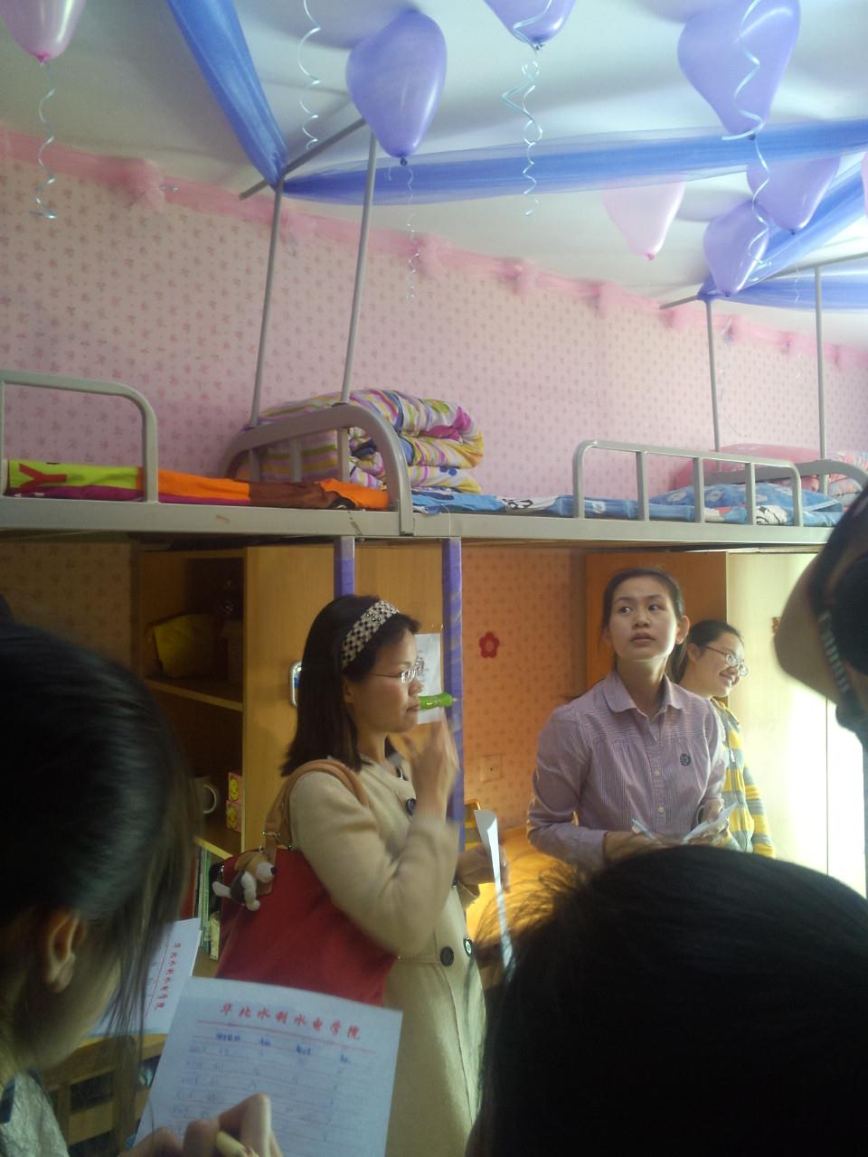 2013年4月12日星期五中午12:30,由国际教育学院学生会生活部主办的宿舍文化节成功举办并结束,由周老师带领的学生会评委等一齐人来参观同学们的宿舍,并进行评定。