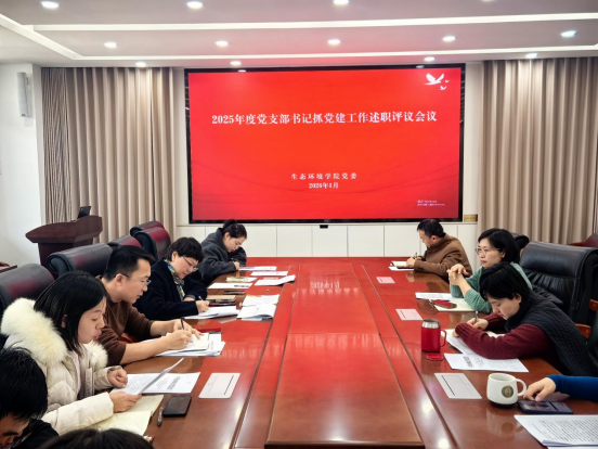 2026年1月14日,生态环境学院党委召开2025年度党支部书记抓党建工作述职评议会议,全面总结过去一年基层党建成效,压实政治责任,谋划新阶段重点任务。学院党委书记叶琳、党委副书记高郁斌及全体党支部书记参加会议。