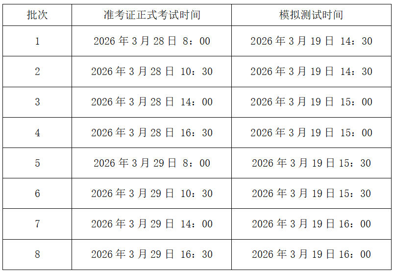 全国计算机等级考试将于2026年3月28、29日正式举行,为使考生考前能熟练掌握上机考试系统的操作步骤流程,根据上级管理部门对考务组织工作的要求,特对报考我校考点的全体考生提供考前模拟服务。具体安排如下: