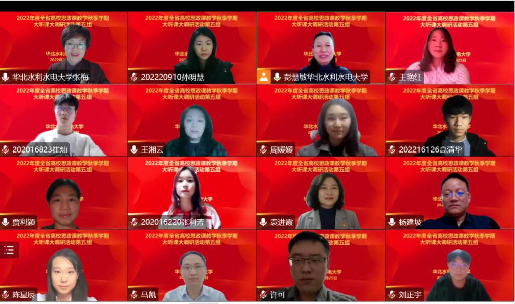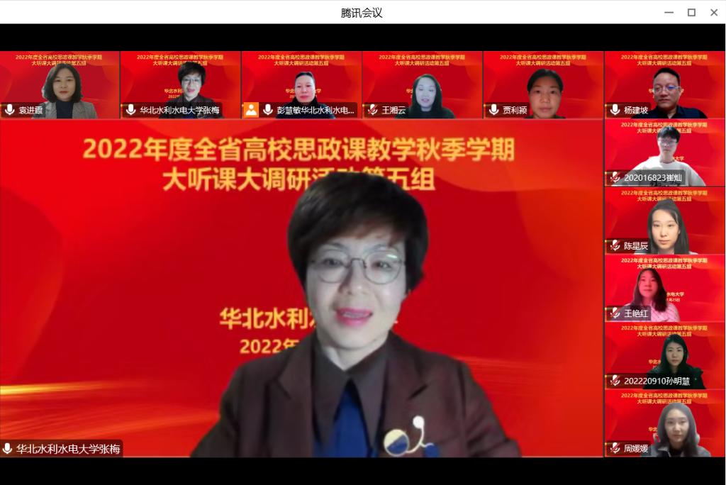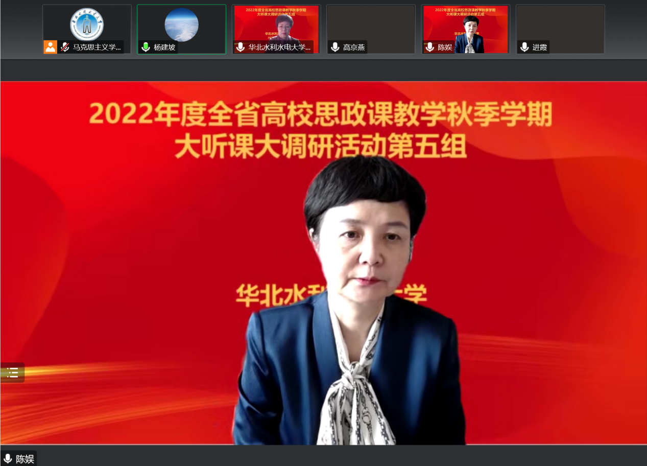 根据省委教育工委、省教育厅2022年度思政课秋季学期“大听课”“大调研”工作安排,11月25日上午,第五调研组在组长河南农业大学马克思主义学院教授陈娱带领下到华北水利水电大学对思政课教学情况进行调研。华北水利水电大学党委副书记高京燕出席调研座谈会,马克思主义学院院长张梅、党委书记杨建坡及师生代表参加调研。杨建坡主持调研座谈会。