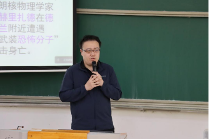朱戈老师以“强核报国”为主题进行了心得分享。他联系国际时事,陈述了“核安全是国家安全的重要组成部分,与每个人都息息相关”的基本事实。回顾了中国核电的发展,从原子弹爆炸到核技术的“军转民”,从“秦山一期”到“华龙出海”,中国核电的发展离不开几代核电人的艰苦奋斗。最后,他结合自己和身边人的真实经历向大家阐明“强核报国”不是空喊口号,更不是遥不可及,而是我们核工程与核技术专业的师生通过努力就能参与进去的事,是我们的责任和使命。