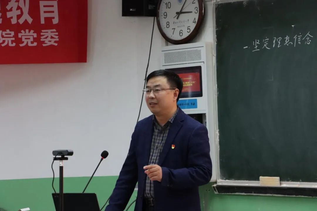 宣讲伊始,孙书记以理想信念为中心,从坚定什么样的理想信念,如何坚定理想信念由浅入深展开宣讲教育。孙书记讲到,大学生应该坚定马克思主义思想;坚定共产党远大理想;坚定四个自信;深入学习,树立起正确的人生观,价值观,正确的理想信念。在树立起正确的理想信念的基础上,清楚地认识到,坚定理想信念是长远的,不是一蹴而就的,需要终身坚持,在坚定理想信念的基础上要保持建党初期共产党人为中国人民谋幸福,为中华民族谋复兴的奋斗精神,同时加强学习,丰富理论,系统掌握马克思主义原理。