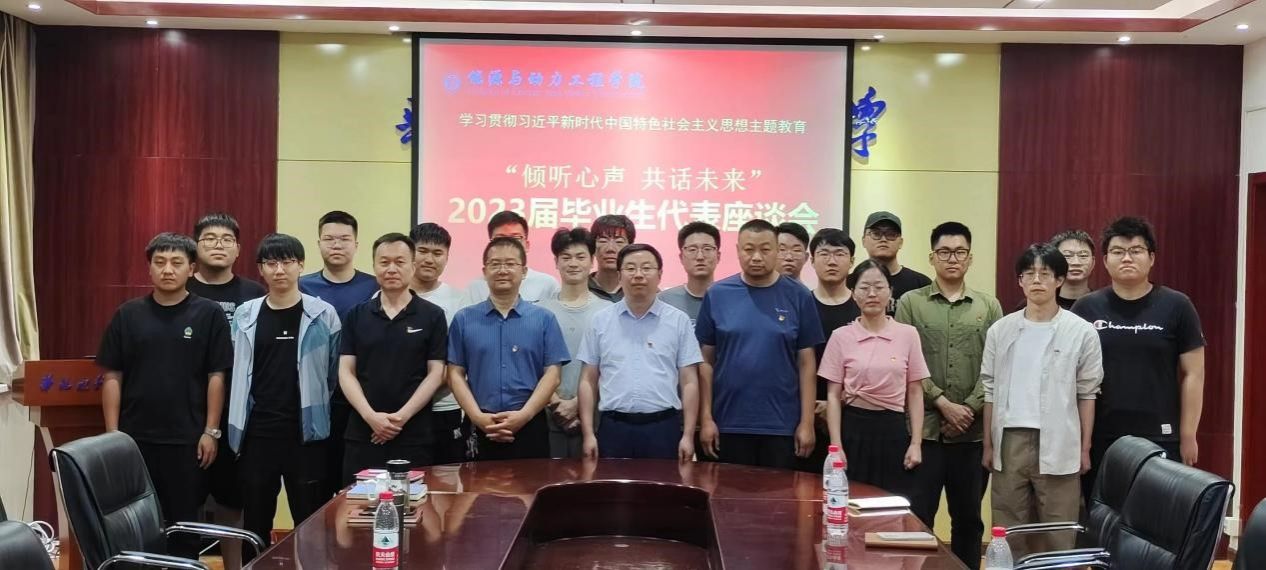 筑梦新征程,共谏创未来。为深入开展学习贯彻习近平新时代中国特色社会主义思想主题教育,推进学院高质量发展,能源与动力工程学院在6月18日召开“倾听心声,共话未来”2023届毕业生代表座谈会。学院党委书记孙垦、党委副书记刘林飞、副院长宋小勇、副院长马强以及2023届毕业生代表参加了此次座谈会。会议由副书记刘林飞主持。孙垦在总结中高度评价了本届毕业生的素养。一是情怀深。同学们的发言充分体现了对母校对学院的真挚感...