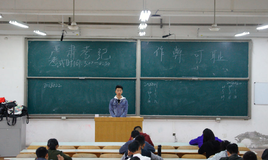 本次考试是对2018级新生纪律观念和考风考纪的一次大检阅。通过这次活动能够增强学生的纪律观念和诚信意识,为我院校园文化建设打下了坚实的基础。希望同学们可以借此机会,真正将学校的规章制度内化于心,外化于形,在以后的学习生活中积极上进,以“诚、朴、勤、仁”规范自我,努力向新时代优秀青年看齐,最终成为一名品学兼优的合格的当代大学生。
