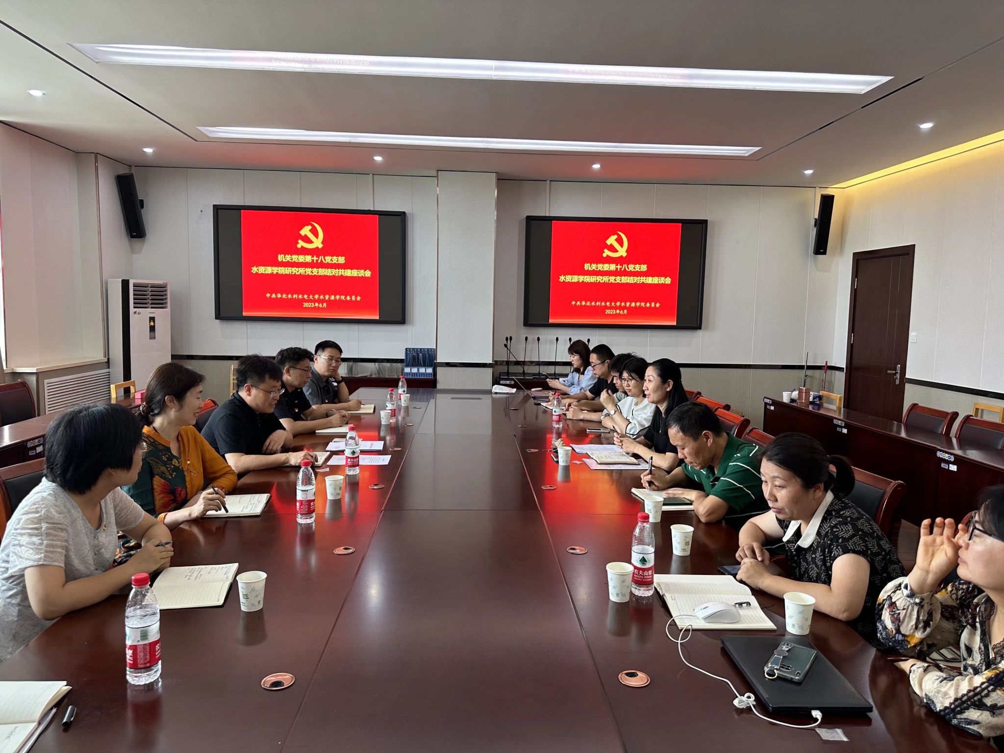 6月21日下午,机关党委第十八党支部与水资源学院研究所教工党支部在水资源学院522会议室举行以“支部共建聚合力、党建引领促发展”为主题的结对共建座谈交流会。机关党委第十八党支部全体党员和水资源学院研究所教工党支部全体委员和部分党员代表参加了座谈会,座谈会由水资源学院党委书记冯飞䶮主持。