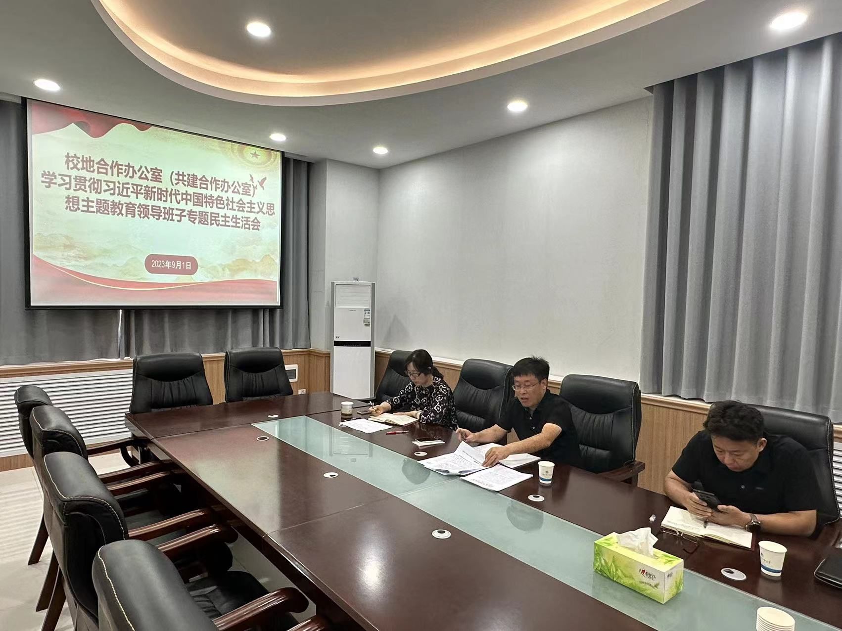 按照学校党委部署和要求,9月1日上午,校地合作办公室(共建合作办公室)班子成员召开学习贯彻习近平新时代中国特色社会主义思想主题教育专题民主生活会。会议由潘建波主持,班子成员朱立新、刘悦参加会议。