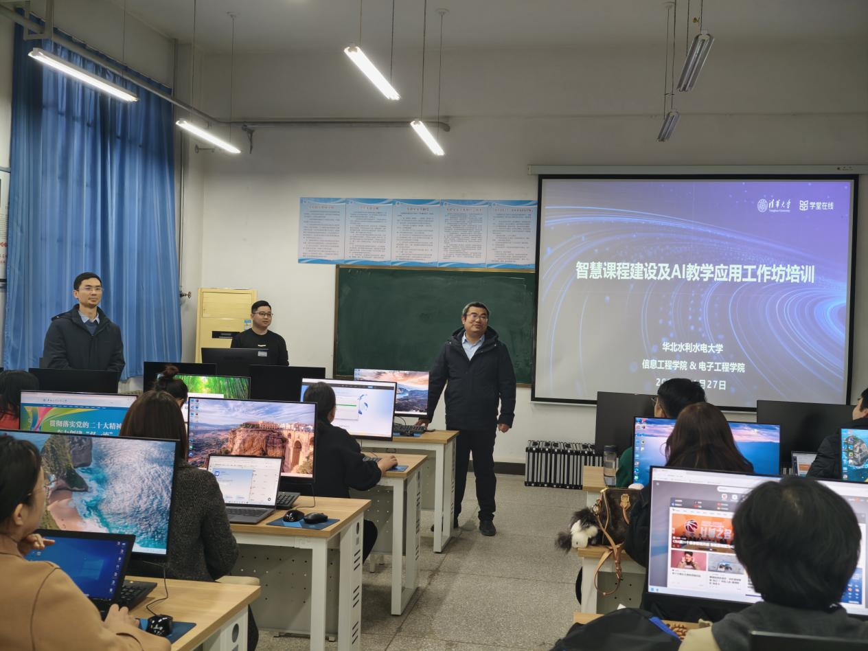 为助力教师掌握AI教学工具,深化人工智能与教育教学融合,11月27日下午,华北水利水电大学信息工程学院联合电子工程学院,在信息工程学院实验中心开展雨课堂AI教学平台培训,信息工程学院马斌副院长、电子工程学院罗文宇副院长主持活动,特邀雨课堂培训讲师刘杰授课,共计90人次教师参与此次培训。