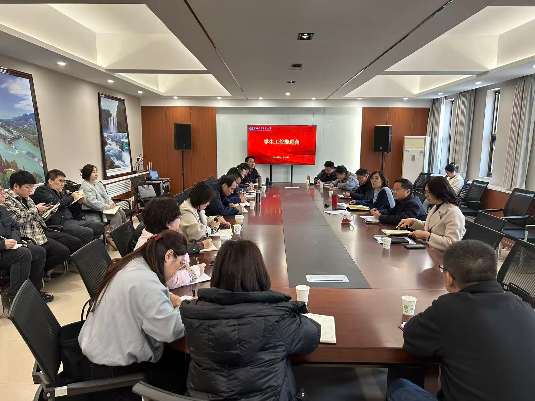 11月11日上午,党委学工部在龙子湖校区文体活动中心第三会议室召开了学生工作推进会,对上一阶段工作进行总结并部署近期重点工作。党委学工部领导班子成员、各学院党委副书记在现场参会,江淮校区各书院党委副书记、副院长在线上参会。会议由学生工作部(处)长郭瑾莉主持。