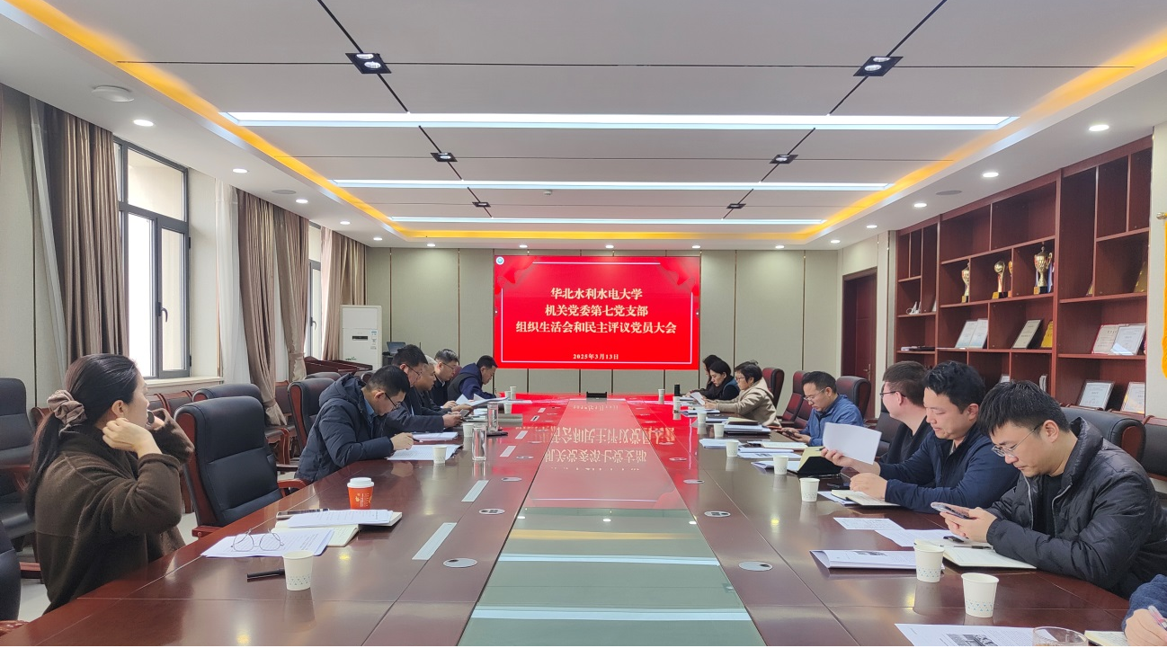 2025年3月13日下午,机关第七党支部在综合实验楼北栋403会议室召开了2024年度组织生活会和民主评议党员会议,机关党委第七党支部全体党员参加了会议。会议由党支部书记张多新主持。