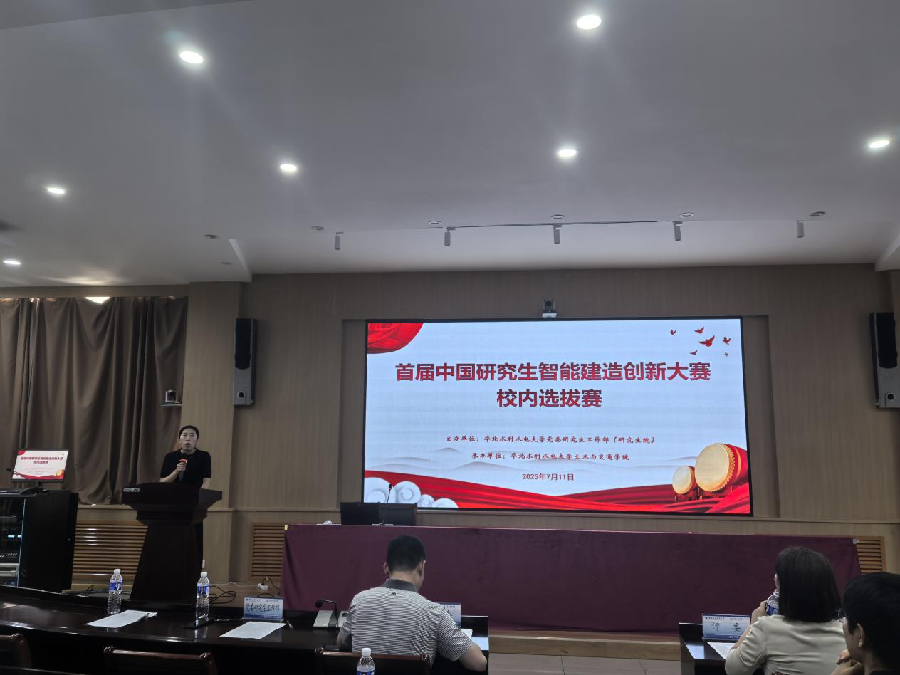 2025年7月11日下午2:30,校党委研究生工作部(研究生院)主办,土木与交通学院承办的首届中国研究生智能建造创新大赛校内选拔赛在我校花园校区第三会议室举办。本次比赛邀请了中原工学院智能建造与建筑工程学院院长赵毅教授、河南工业大学科技处副处长庞瑞教授、郑州大学土木工程学院邓恩峰教授作为评审专家。研究生工作部周敏副部长、土木与交通学院副院长李克亮出席了本次活动。